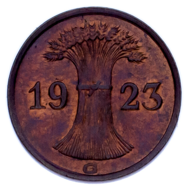 1923-G Germany Rentenpfennig - Mintage: 1,004,000 - KM# 30 - Uncirculated (MS~)