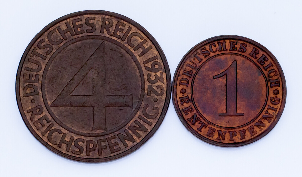 1923-1932 Germany 1 & 4 Rentenpfennig Lot (2 coins) KM# 30, 75