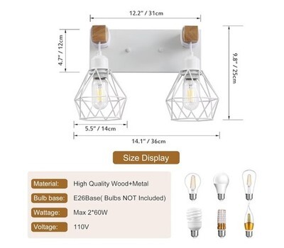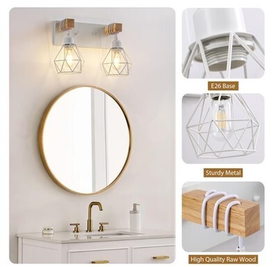 The 2-light farmhouse vanity light is designed to enhance the aesthetic of any home with its rustic charm and timeless appeal. The incorporation of wood accents and an elegant metal lampshade creates a sophisticated and inviting atmosphere.