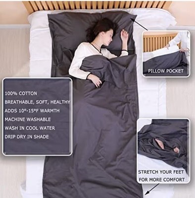 Seriously, bring this travel sheet with you whenever you go anywhere because some hotel sheets are just too harsh with all that bleach. No matter where you go in the world, or what time of year it is, this cotton sleeping bag will make you feel like you're sleeping on your own cotton sheets at home ? cool, clean, comfy, and safe.