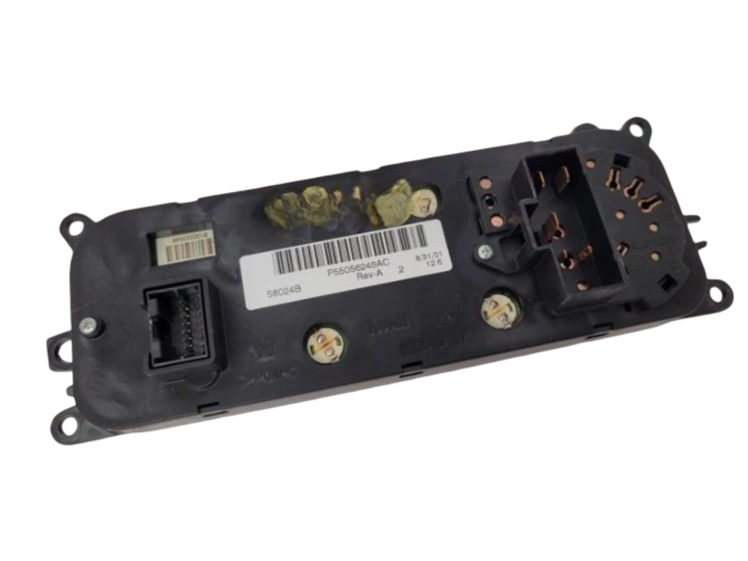 This OEM A/C temperature control unit fits 2002 Dodge Dakota models equipped with the 4.7L petrol engine and carries part number P55056246AC. It controls the vehicle?s heating and air conditioning temperature settings to ensure proper climate system operation. The unit is in good used condition with normal wear from use and shows no cracks, broken buttons, connectors, or other damage. All mounting points are intact. This is a direct replacement OEM part and will ship with proper tracking.