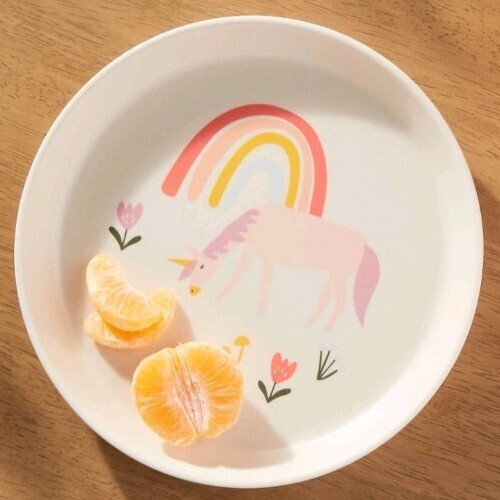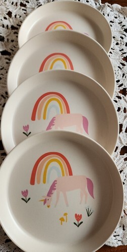 Four (4) Pillowfort™ ~ UNICORN - RAINBOW ~ 7.25" Plates ~ Melamine ~ Cream Color