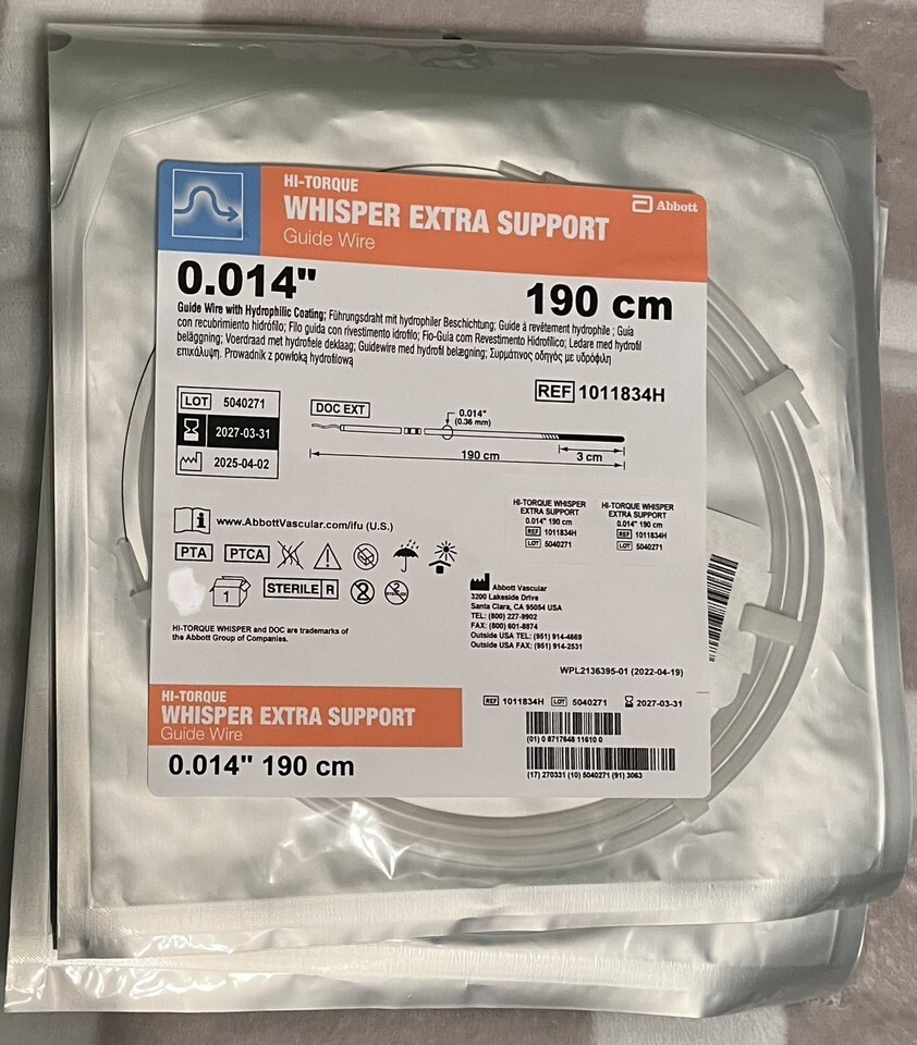 Abbott 1011834H Hi-Torque Whisper Extra Support Guide Wire 190cm Ex3-31-27 11-30-26