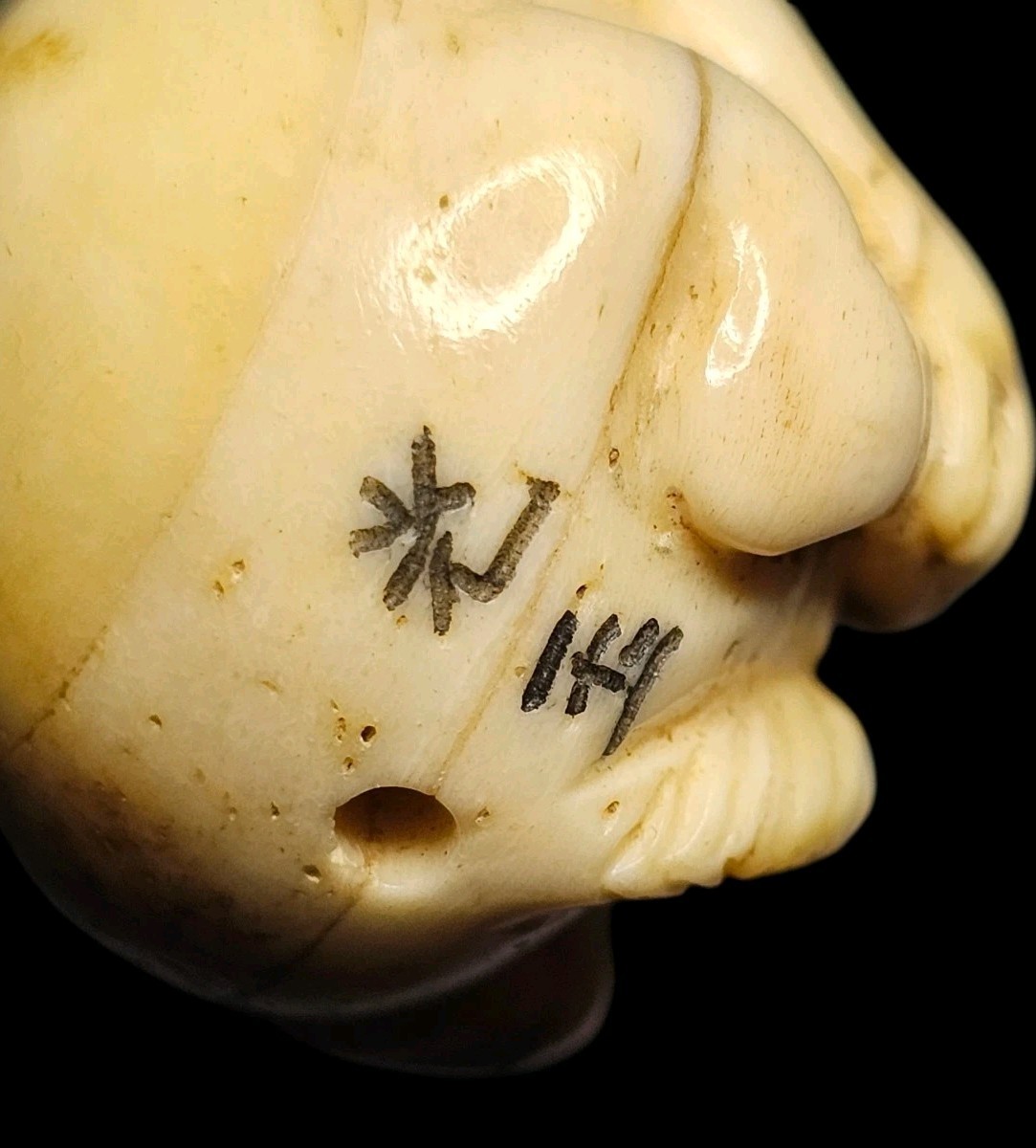 A superb collector piece ? early signed bone ojime like this are getting harder to find and are highly sought after.