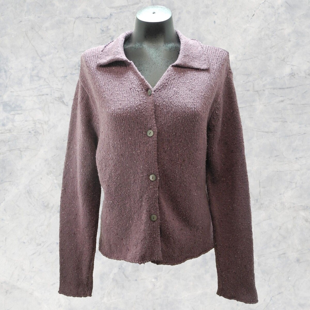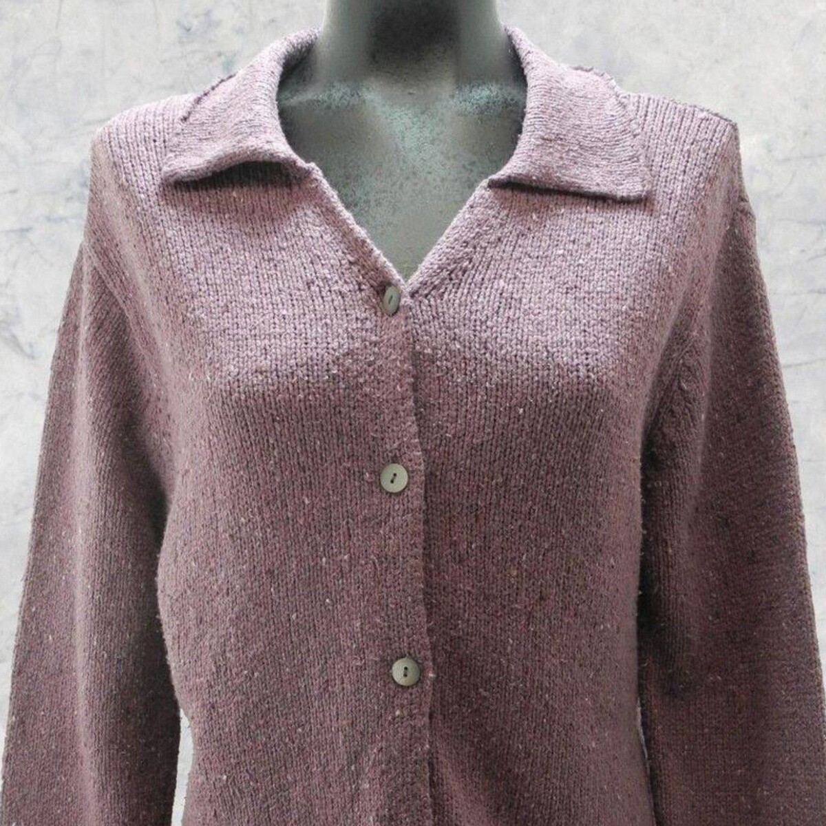 J Jill Purple Silk Wool Blend Collared Button Front Sweater Women’s Size Small