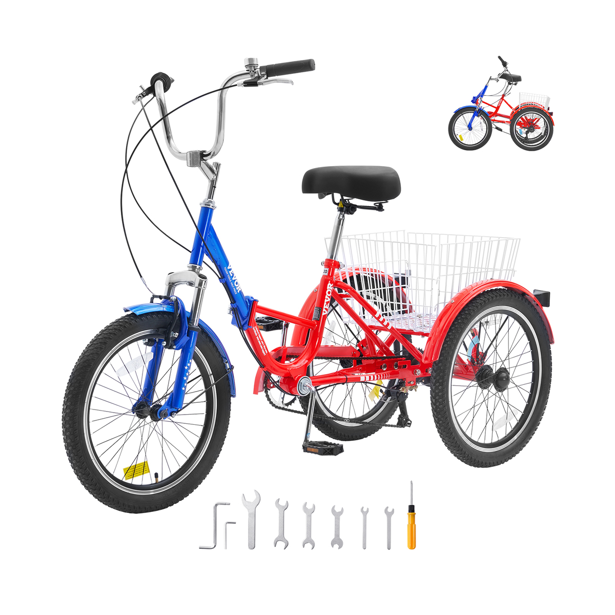 Find Your Perfect Fit: Our foldable adult tricycle trikes come in various sizes and colors to suit every rider. Choose the 20" wheel for heights 4'8" - 5'6", the 24" for heights 4'11" - 5'10", and the 26" for heights 5'3" - 6'2". And with the colorful user manual and assembly tools included, getting started is a breeze.
