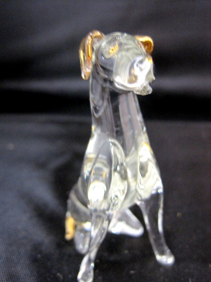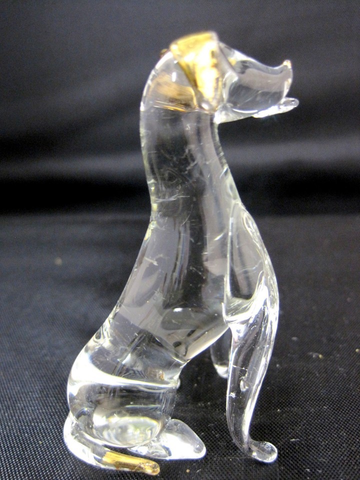 ? This handcrafted crystal clear glass figurine of a dog or puppy stands at 2.5 inches tall.