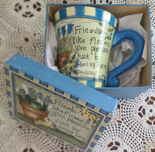 Friends Like Flowers Give Pleasure... Coffee Mug w/Decorative Box ~ Ceramic Mug