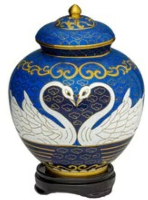 Large/Adult Cloisonne Swan Lake Funeral Cremation Urn for Ashes