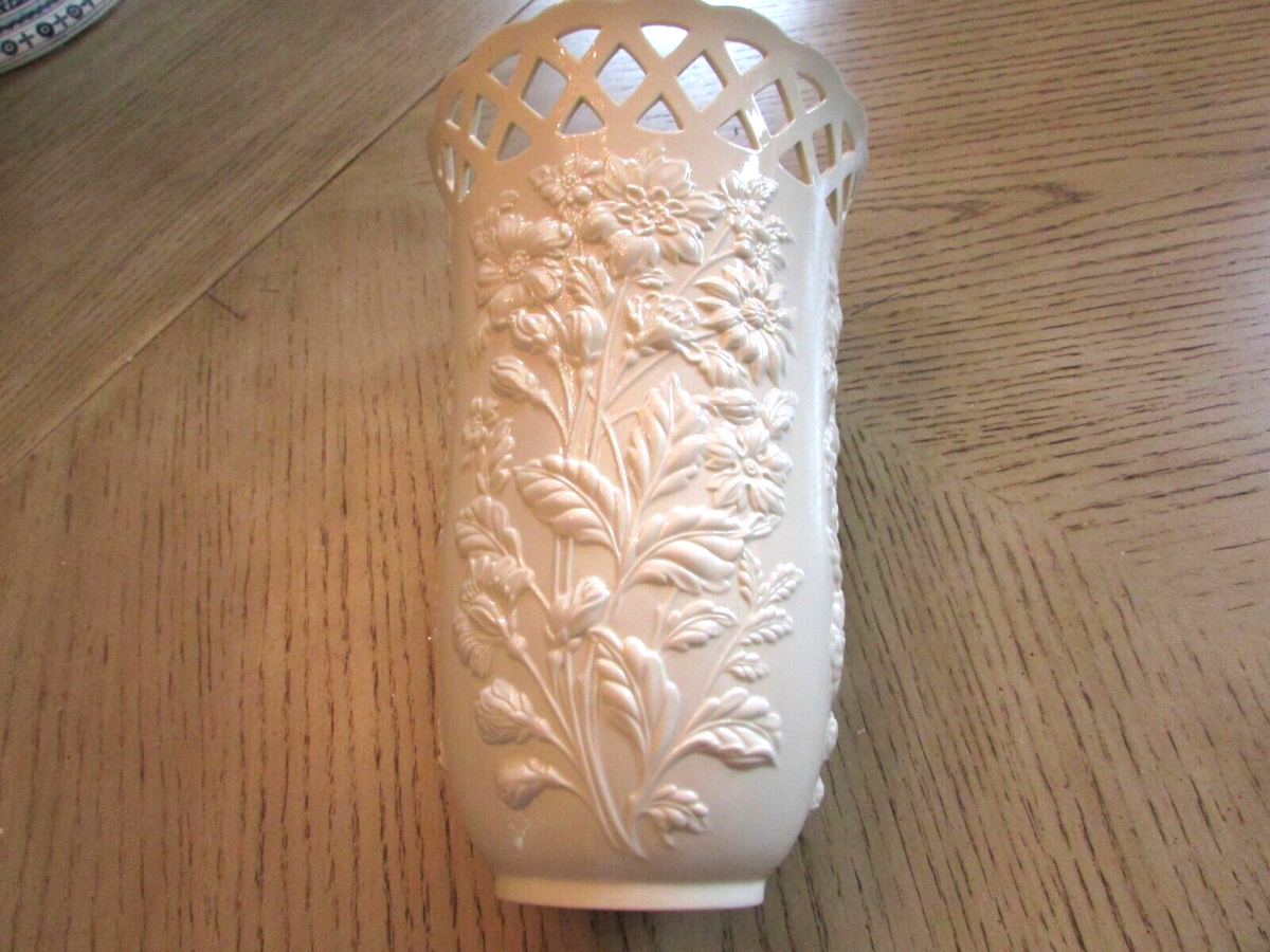 Lenox 10.75" Lattice Rimmed Floral Vase Embossed Flowers