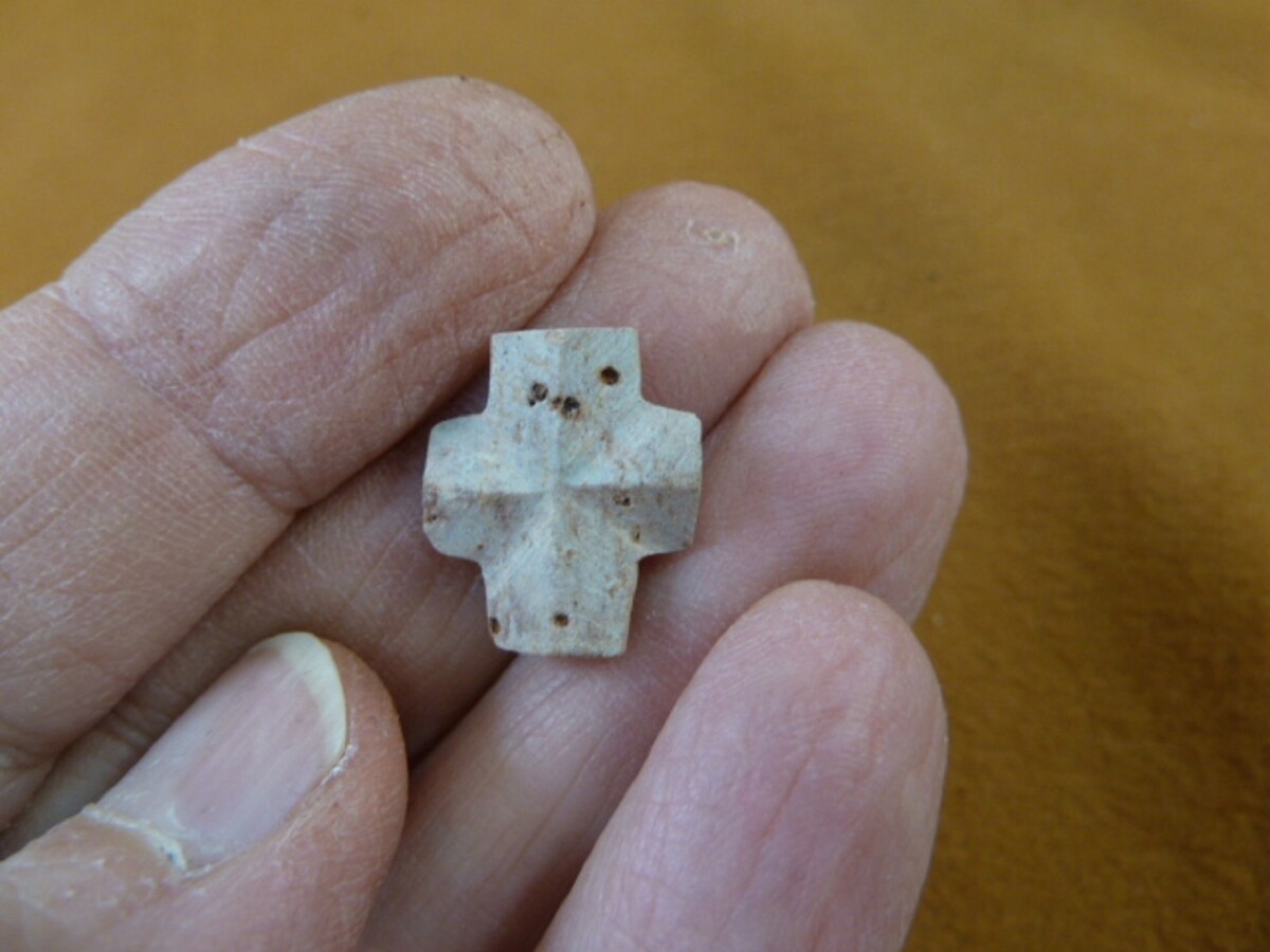 We also drill these and wire as pendants after filing away the softer stone to show the cross more clearly (see our store).