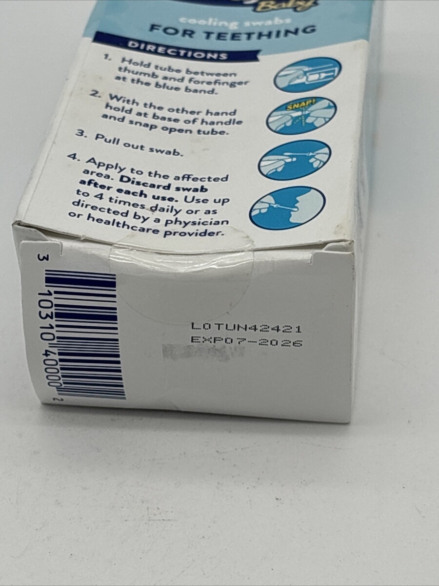 Baby Daytime Cooling Swabs for Teething Drug-Free 12 Count -1pk Swabs Exp:07/26