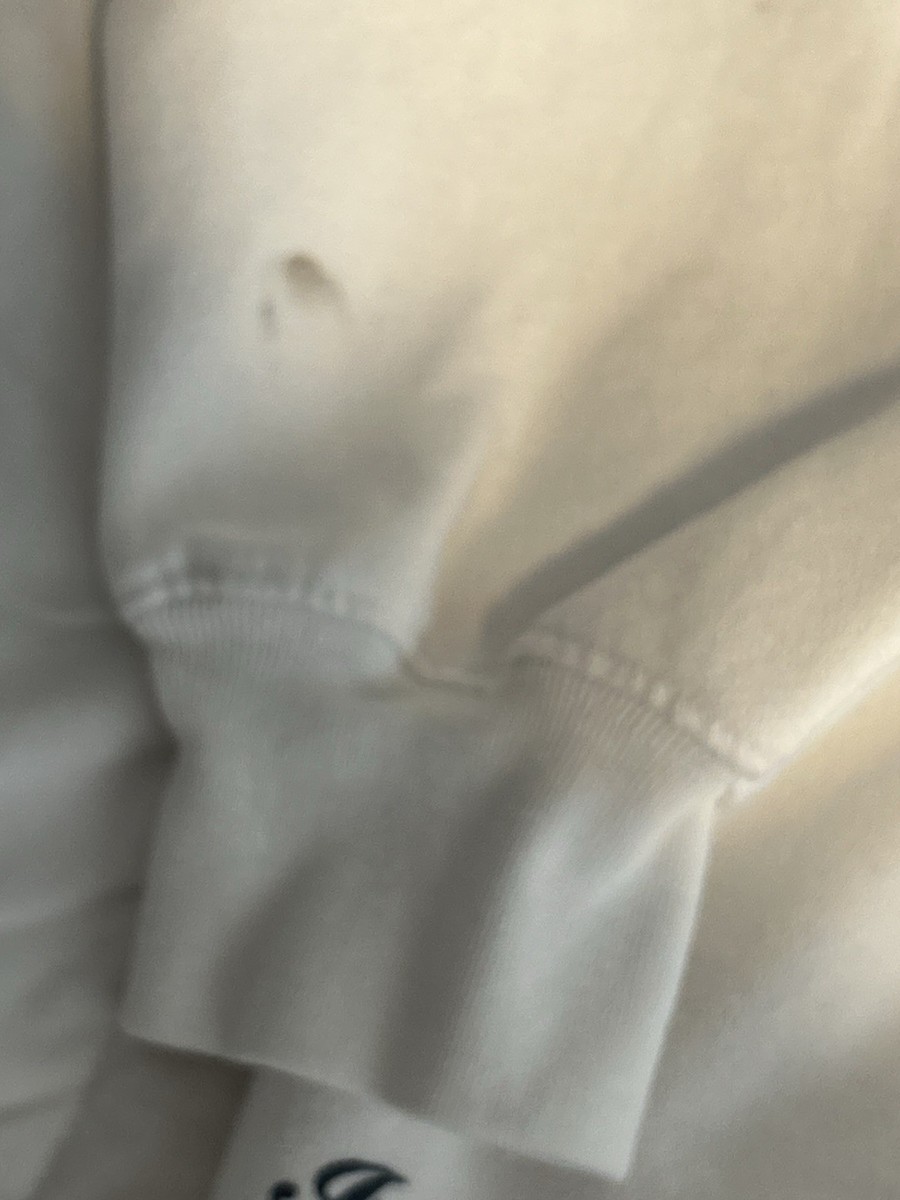 Tiny mark on bottom of one of the sleeves as shown in the last photo. Nothing too bad at all. This looks like it could easily be removed with perhaps oxy clean, which I do not currently have.