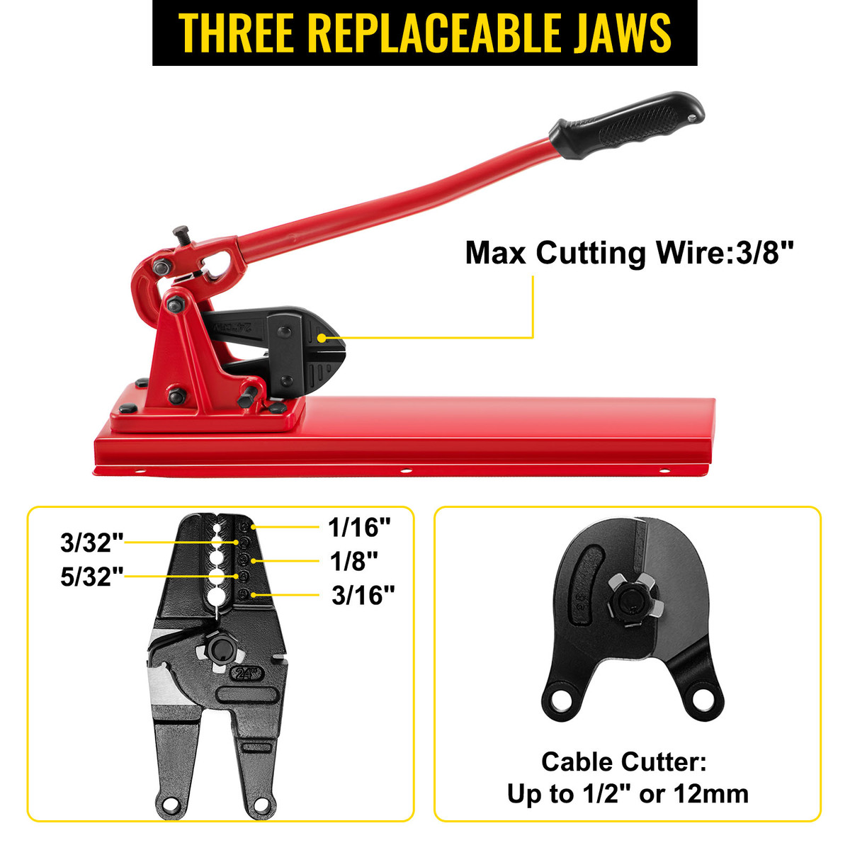 VEVOR Bench Swager Tool 24" 1/16"-3/16" Aluminum/Copper Sleeves 1/2" Wire Rope