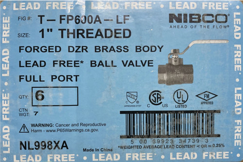 NIBCO T-FP600A-LF 3/4" FIPT Brass Ball Valve NL998X8