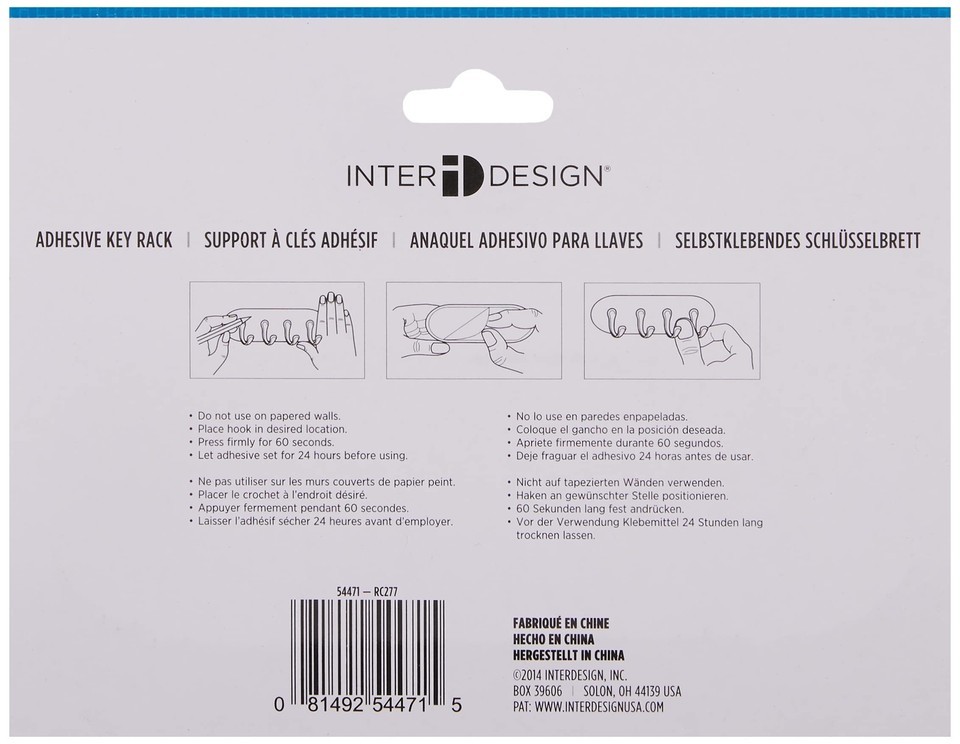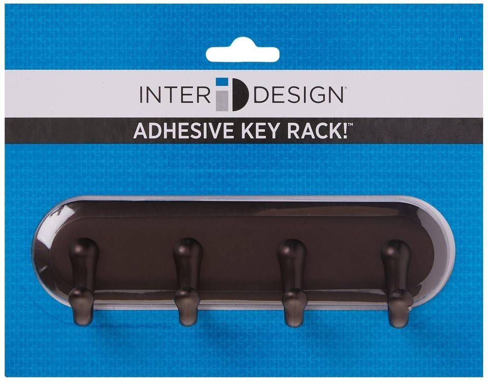 InterDesign's York self-adhesive key rack allows you to store your keys anywhere with no hardware required. The metal key rack has a self-adhesive backing.
