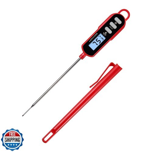 Oven Guide Thermometer. Oven safe. Stainless steel. Fahrenheit and Celsius.