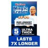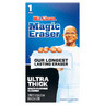 Mr. Clean Magic Eraser Ultra Thick multi surface cleaner lasts 7X longer than the Original Magic Eraser - no more sponges or other cleaning products needed. Just wet, squeeze, and erase over 150 messes with ease. Heavy duty cleaning micro-scrubbers reach deep into surface grooves, lifting away built-up dirt and grime. Its an all purpose cleaner that tackles tough messes all over your house - inside and out. Use as a bathroom cleaner on soap scum, tub rings, and water spots. Use it in your kitchen on permanent marker stains, greasy counters, and grimey stovetops. Use it outdoors on grill grates and patio furniture. Mr. Clean Magic Eraser Ultra Thick is also a great shoe cleaner and wall cleaner. Add Mr. Clean Magic Eraser Ultra Thick to your arsenal of cleaning supplies today.
