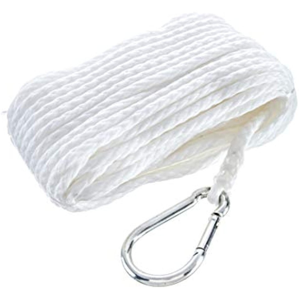 Hollow braid polypropylene anchor line with spring hook