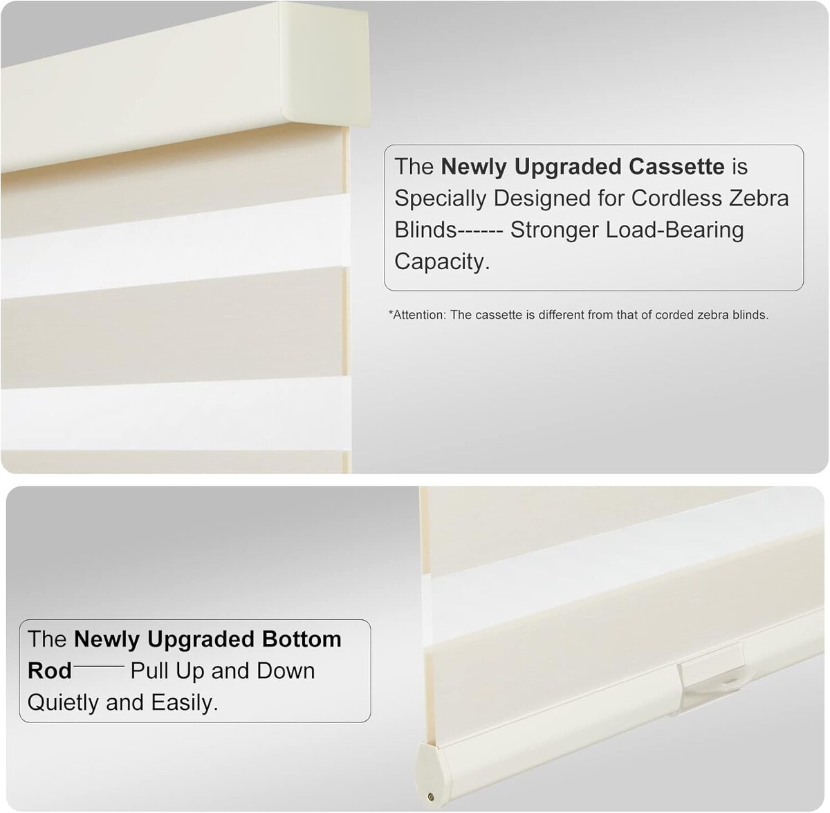 Persilux Cordless Zebra Blinds for Windows (34" W x 72" H, Beige)