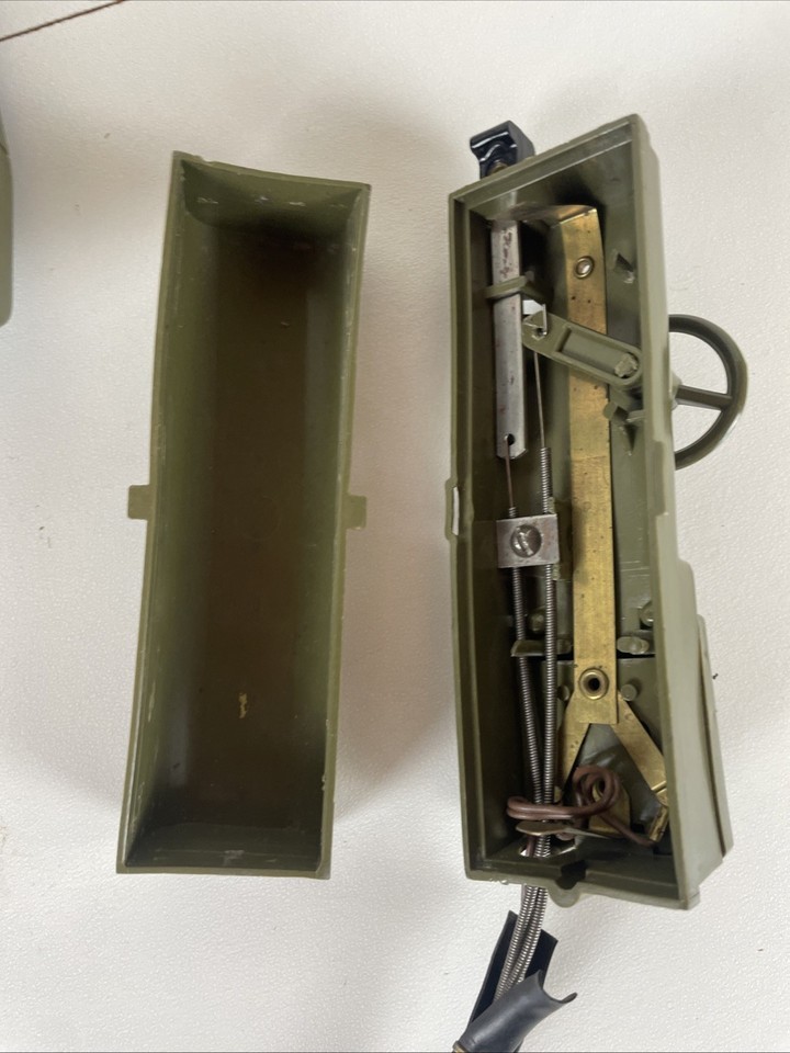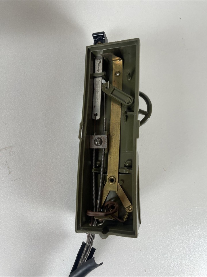 untested, no corrosion in battery compartment; wires from remote to the tank are visible and have partially come out of the rubber coating, comes in original box