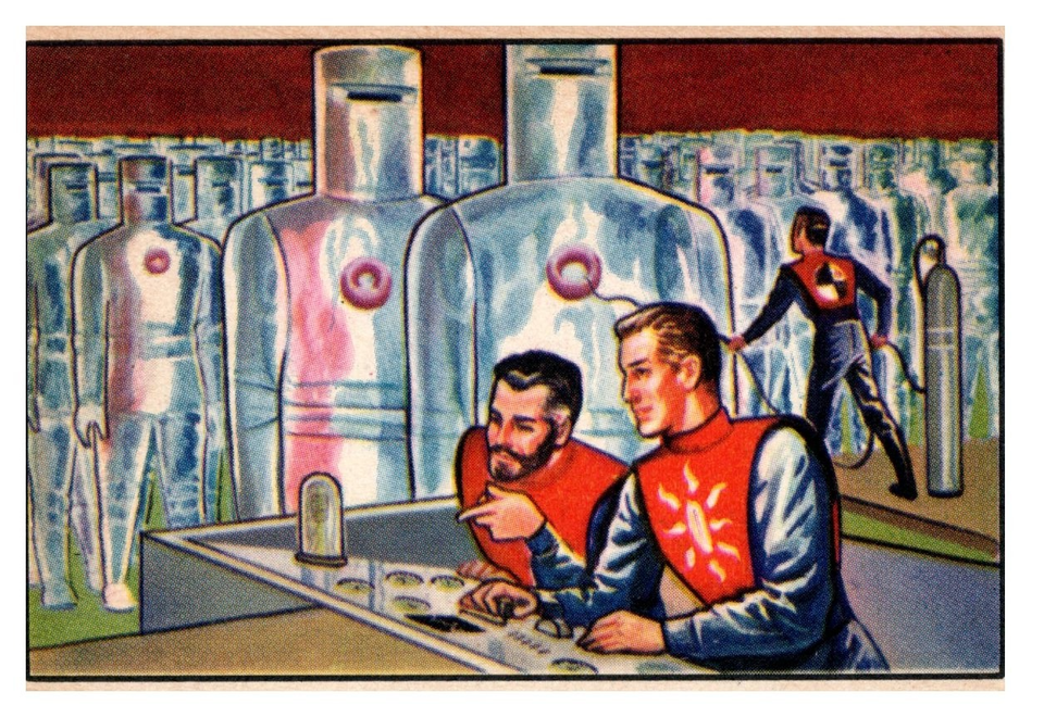 Jets, Rockets, Spacemen Bowman Gum #87 1951 EX/VG+ Assembling Ice Robots Sci-Fi