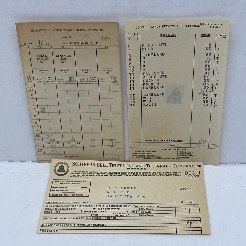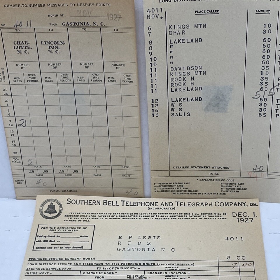Southern Bell Telephone and Telegraph 1927 Phone Bill, Vintage Ephemera