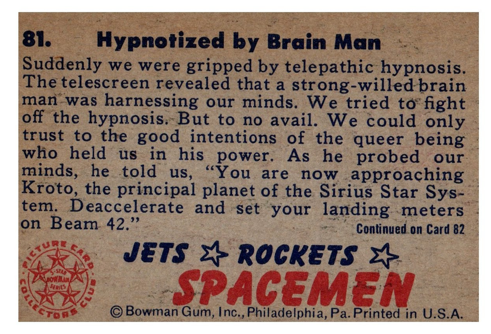 Jets, Rockets, Spacemen Bowman Gum #81 1951 EX/VG+ Hypnotized Brain Man Sci-Fi