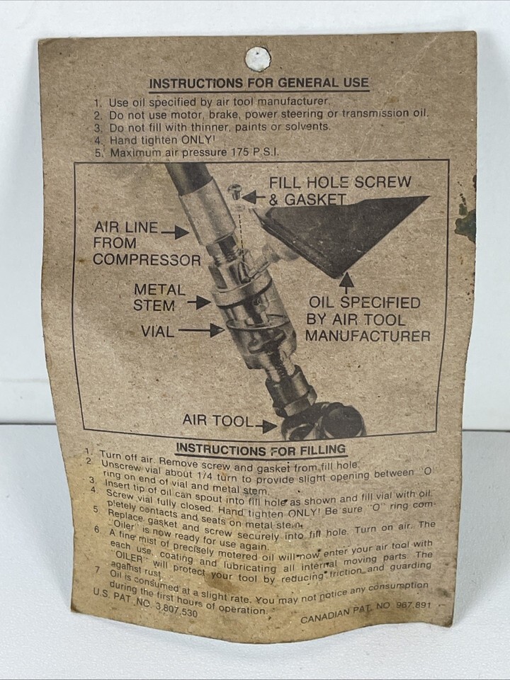 "The Oiler" Automatic Oiler for all Pneumatic Tools NOS S G Tool Aid NO 98500