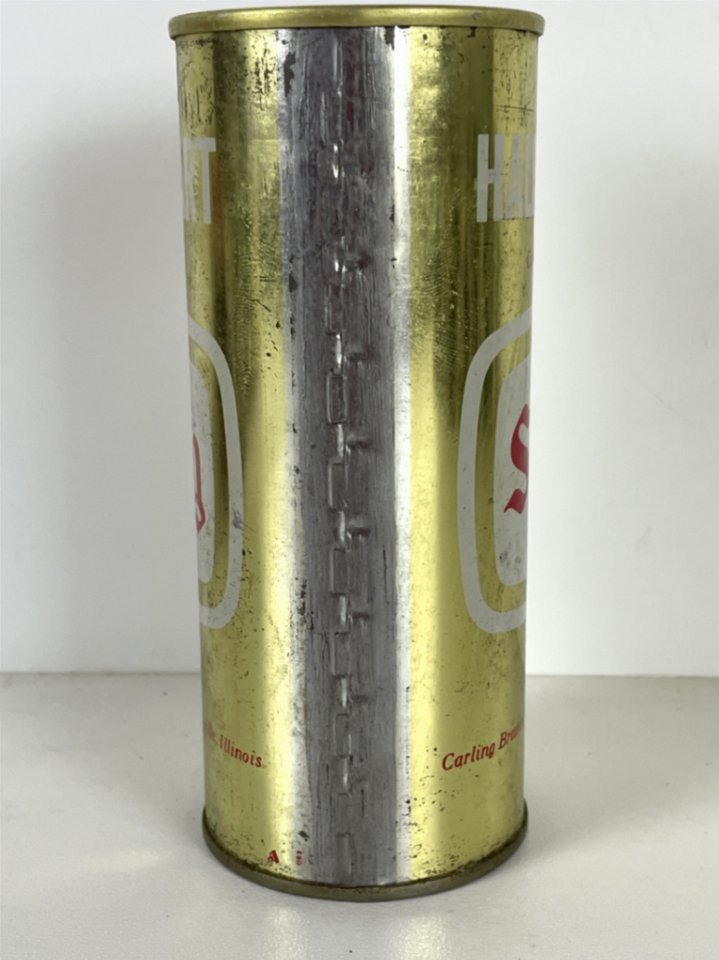Produced by the Carling Brewing Company in Belleville, Illinois, this flat top can showcases authentic breweriana charm with its metallic finish and vintage graphic style. The seamless side seam and original pull ring lid enhance its authenticity as a mid-20th century collectible. This piece is perfect for collectors of classic beer cans, vintage advertising, and Americana memorabilia.