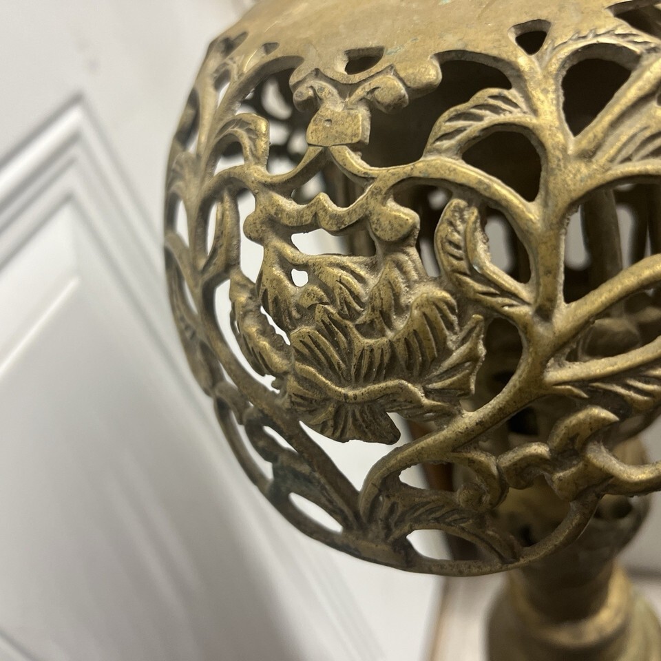 Vintage Brass Planter Stand Accent Candle Plant Floral Filigree 30” Tall