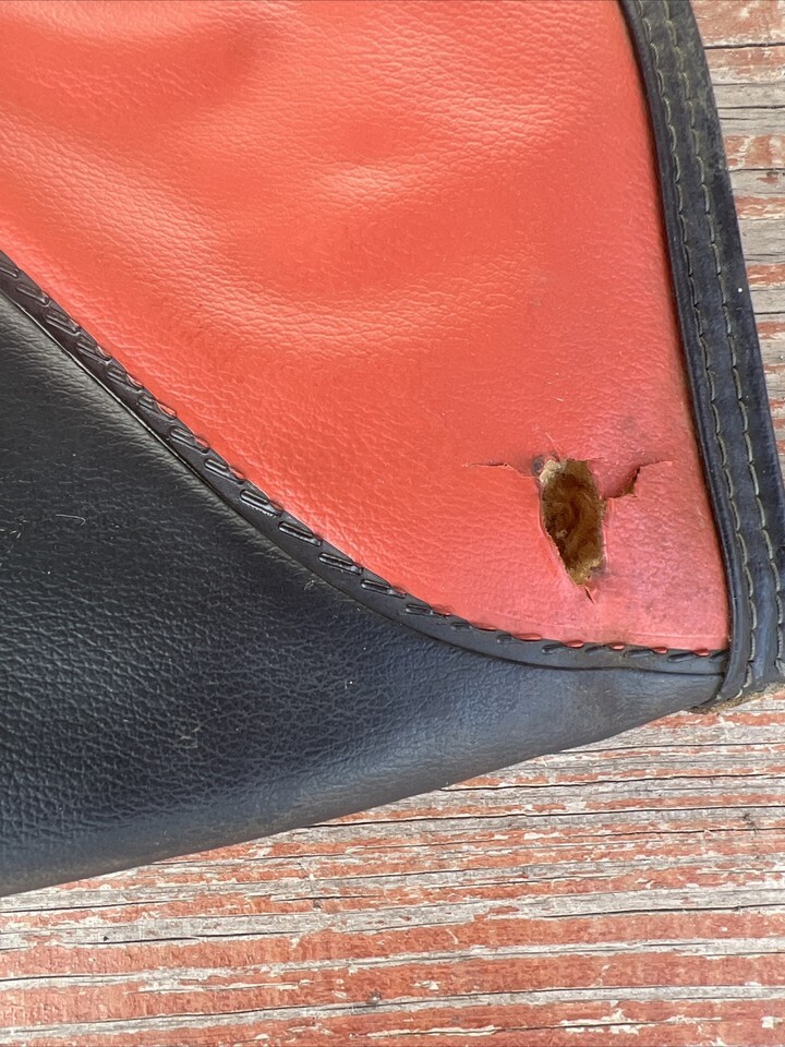 E3-Note: this is old and has some imperfections but is still useable. Zipper works. Material has been wiped down but could use some cleaner. Note small holes , has scuffs and scratches. The inside material is dirty. It will be folded in half to ship