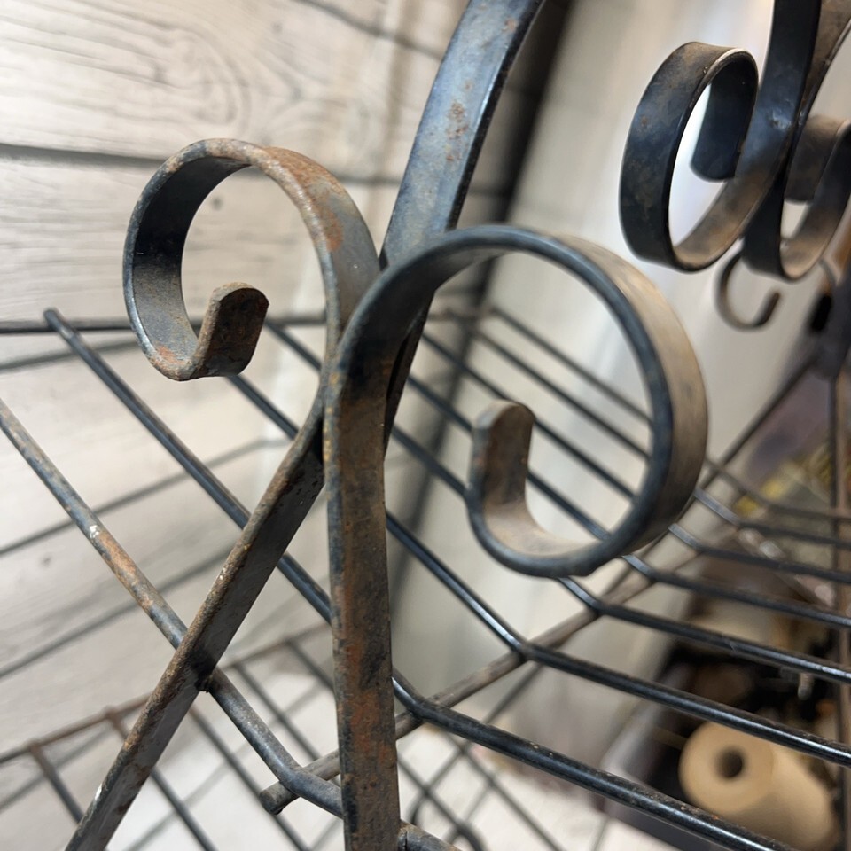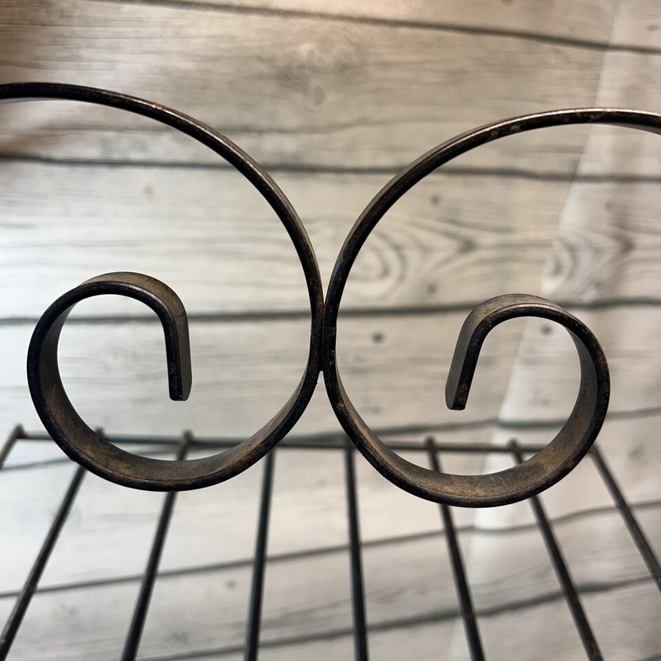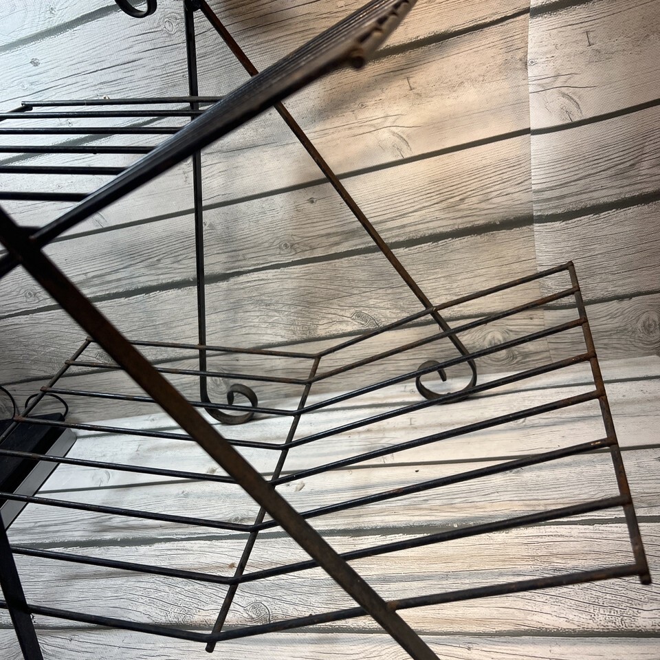 Vintage MCM Metal Iron Wire 2 Tier Record Book Rack Log/wood Fireplace Stand