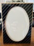 This beautiful oval picture frame from Italy is a perfect addition to any collection. With an antique brass finish and patina, it exudes a Victorian charm that will make your artwork or photo stand out. The frame measures 4 inches in length, 6.5 inches in height, and less than 0.5 inches in width. It can hold a 2.5 x 3.5 inch photo and has a clear glass covering. The frame features a portrait orientation and can be easily hung on a wall. It is an original, licensed reproduction that is suitable for all occasions. The frame is not handmade and its age is unknown. It is made of metal and has a pattern of children that adds to its charm.