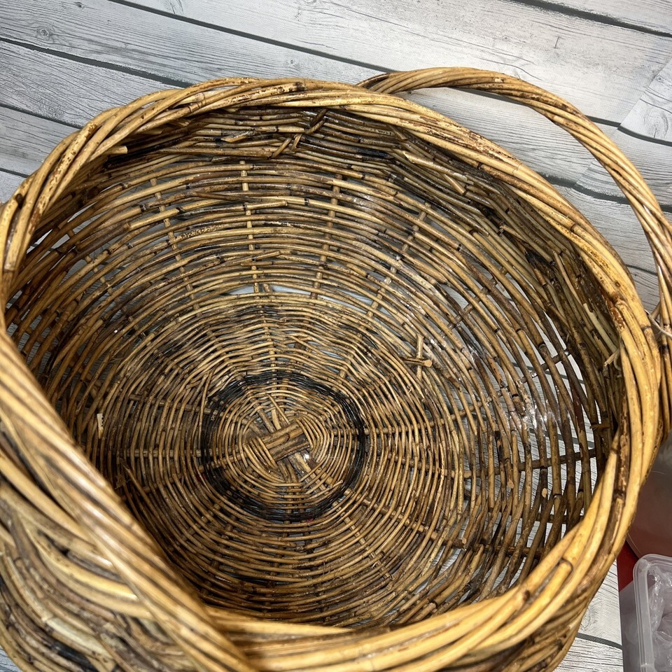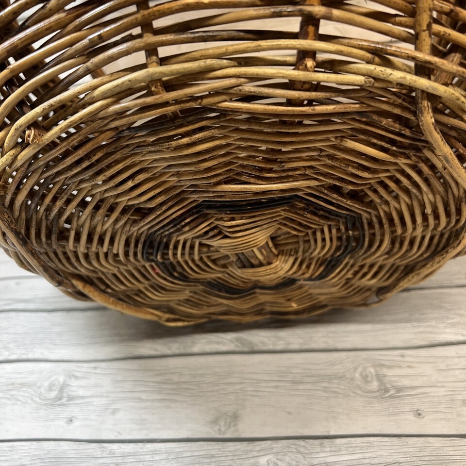 Antique Gathering Storage Quilt Basket w/ Grapevine Braid 2 Handles Primitive