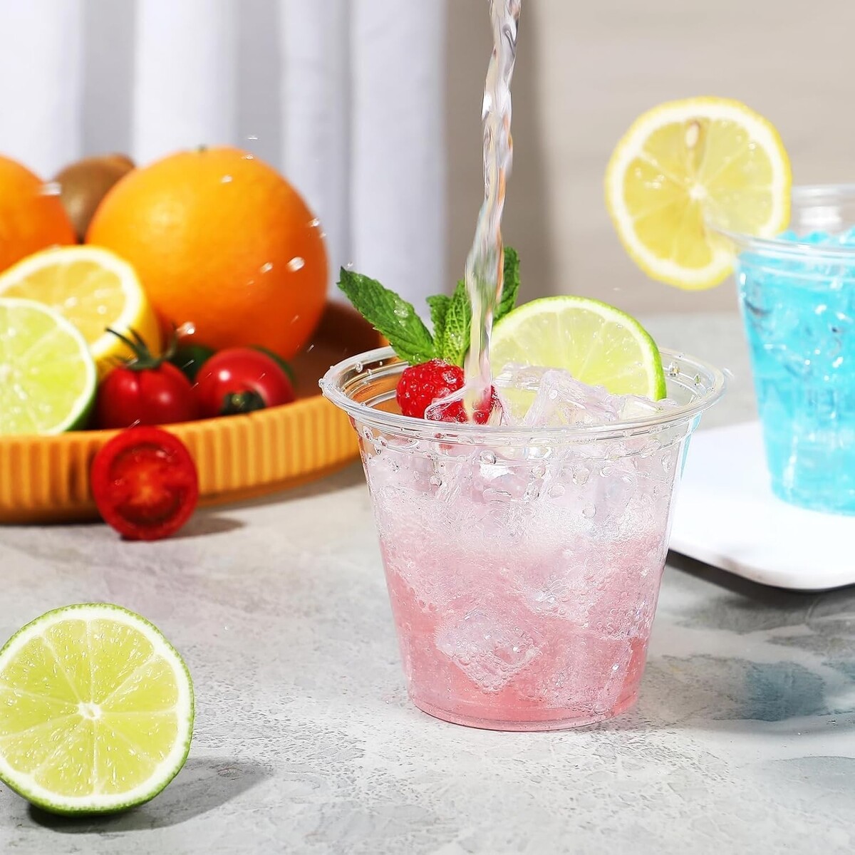 Perfect for Any Occasion: These 9 oz plastic cups are great tabletop dinnerware wine, juice, colorful sodas, champagnes and mixed drinks. PET water cup disposable have excellent transparency to see the color and texture of the drink in the juice cup