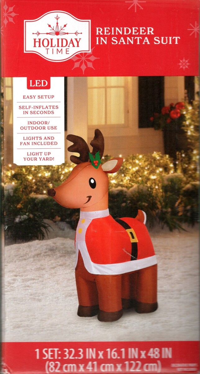 HOLIDAY TIME 886056 AIRBLOWN INFLATABLE REINDEER IN SANTA SUIT LED 4' - NEW