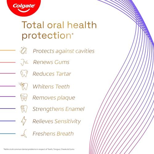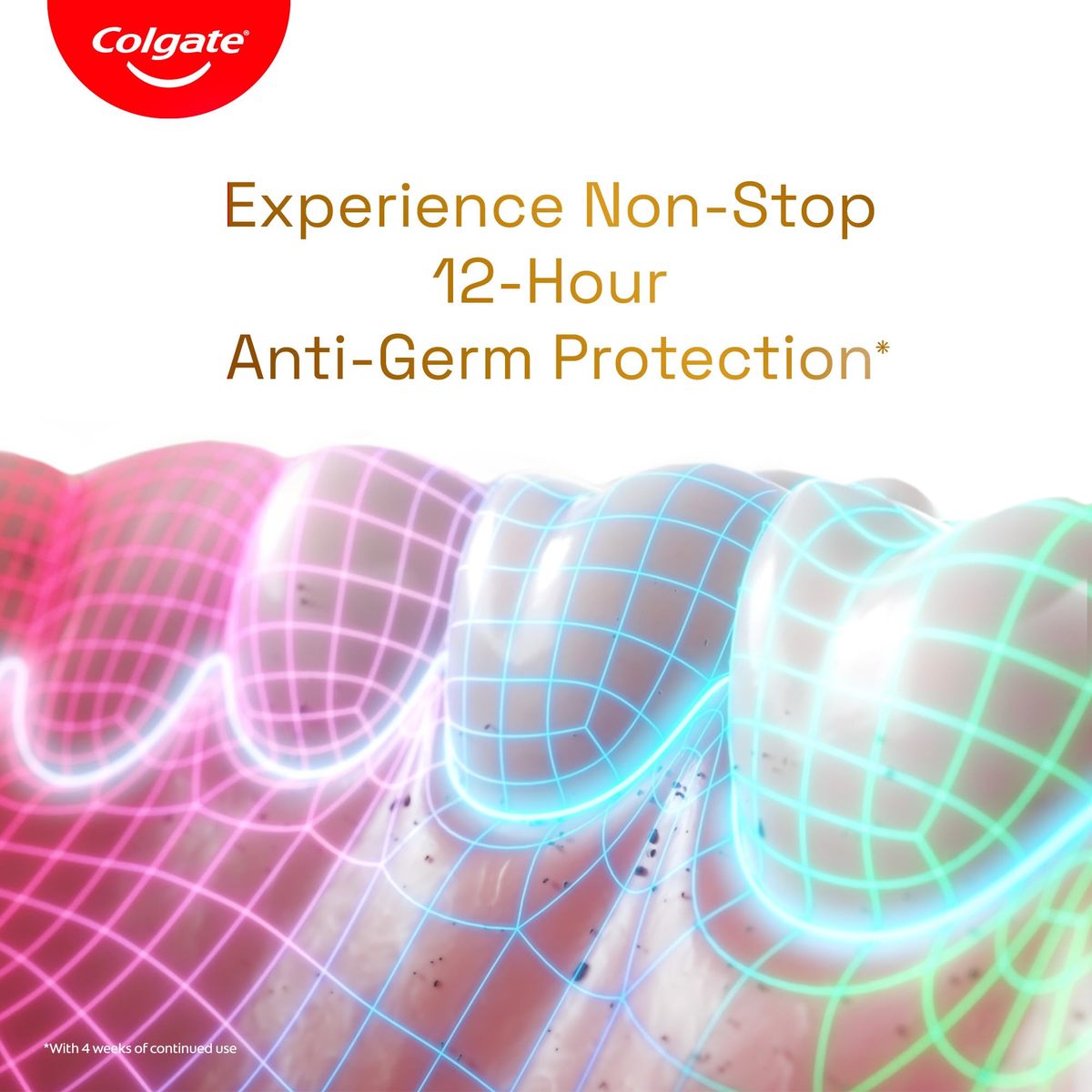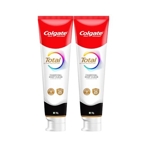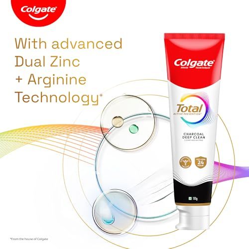 Product description: Colgate Total Charcoal Deep Clean Anti-germ Toothpaste offers stronger 12-hour anti-germ protection*, making it an optimal choice among Colgate toothpastes. This all-in-one Colgate Total toothpaste** uses advanced dual zinc and arginine technology to fight germs not just on your teeth but also on your tongue, cheeks, and gums, providing gum care and complete oral health protection.*** The unique fluoride toothpaste formula with micro-charcoal particles helps clean teeth by removing surface stains. This black and white charcoal toothpaste breaks down into a rich foam, providing deep cleaning, helping reduce plaque and tartar and also removing surface stains for a brighter, whiter smile. Enjoy the benefits of deep anti-germ antibacterial cleaning, fresh breath, and teeth whitening while caring for your whole mouth with this Colgate paste. This fluoride toothpaste for adults is vegan and gluten-free. Whether you?re looking for anti-germ or teeth whitening toothpaste for your oral care routine, this Colgate toothpaste delivers all-around freshness and mint flavor benefits. (*Up to 12 hours of protection vs. ordinary non-antigerm fluoride toothpastes, with 4 weeks of continued use **Refers to the benefits of plaque, gingivitis, tartar, sensitivity, fresh breath, whitening ***Refers to the 8 common dental problems of mouth, teeth, cheeks, gums)