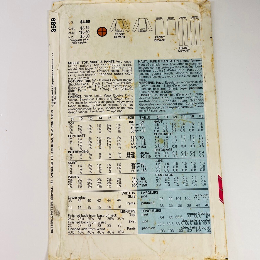 Vtg Butterick Pattern 3589 Misses Top Skirt and 20 similar items