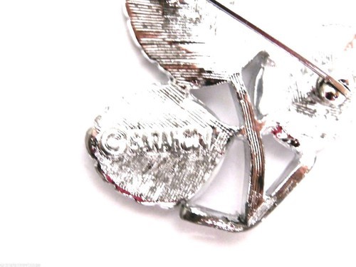 Signed RETRO Sarah Coventry Petite Set Brooch Ears Silver 1967 Vtg Book Piece