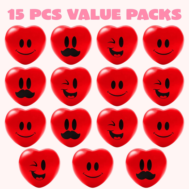 SUPER VALUE. Our stress relief balls consist of 15 pieces of squishy toy balls. The happy is perfect for the fun valentines day.