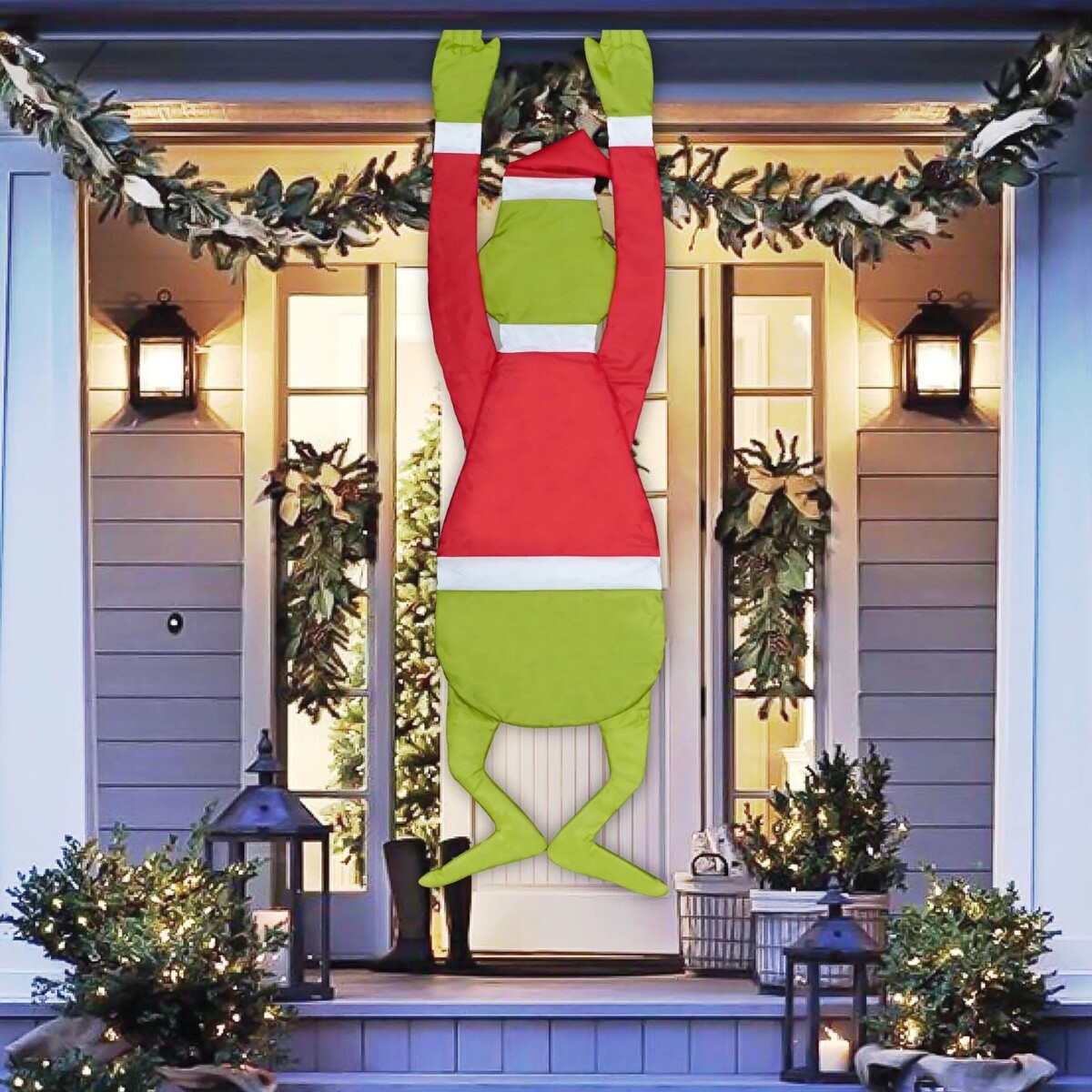 Holiday decoration . The green Grinch, easily hangs from porches, doors