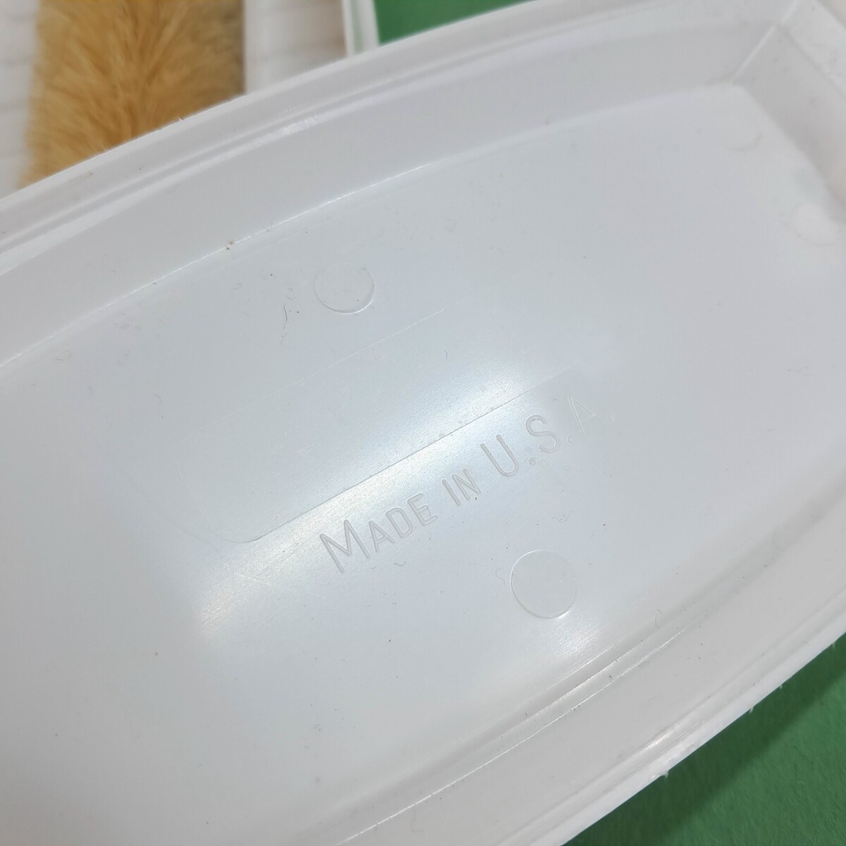 Handheld table brush sweeper. White plastic. Some minor scuffs from use. Overall very good condition.