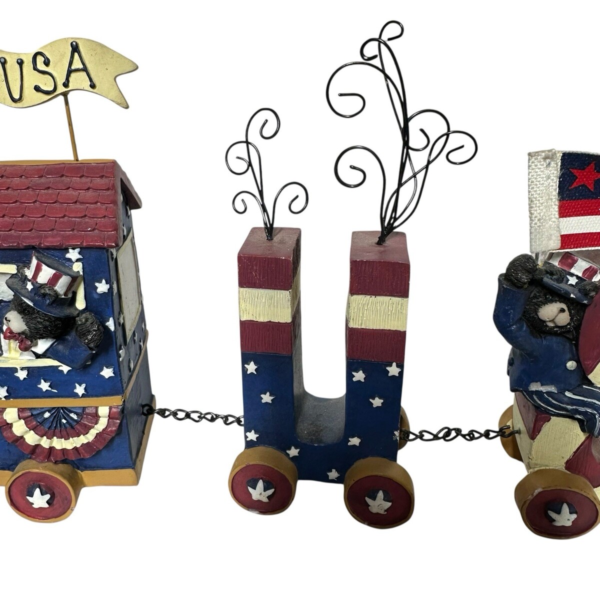 Patriotic Wooden Teddy Bear Train USA Red White Blue Americana 4th Decor 15.5"