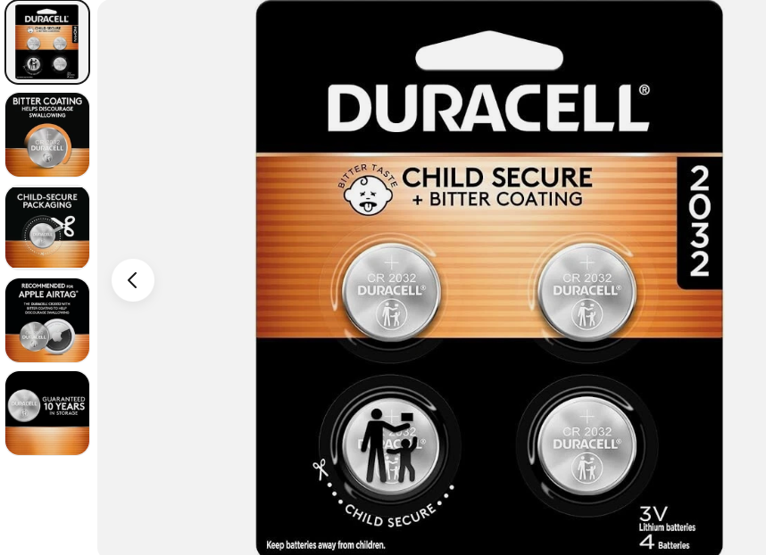 3 pack Duracell CR2032 3V Lithium Battery Child Safety Features, 4ct ea exp 2034