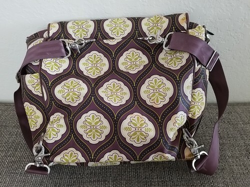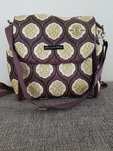 Petunia Pickle Bottom Backpack Shoulder Diaper Bag Brown Light Yellow Green EUC