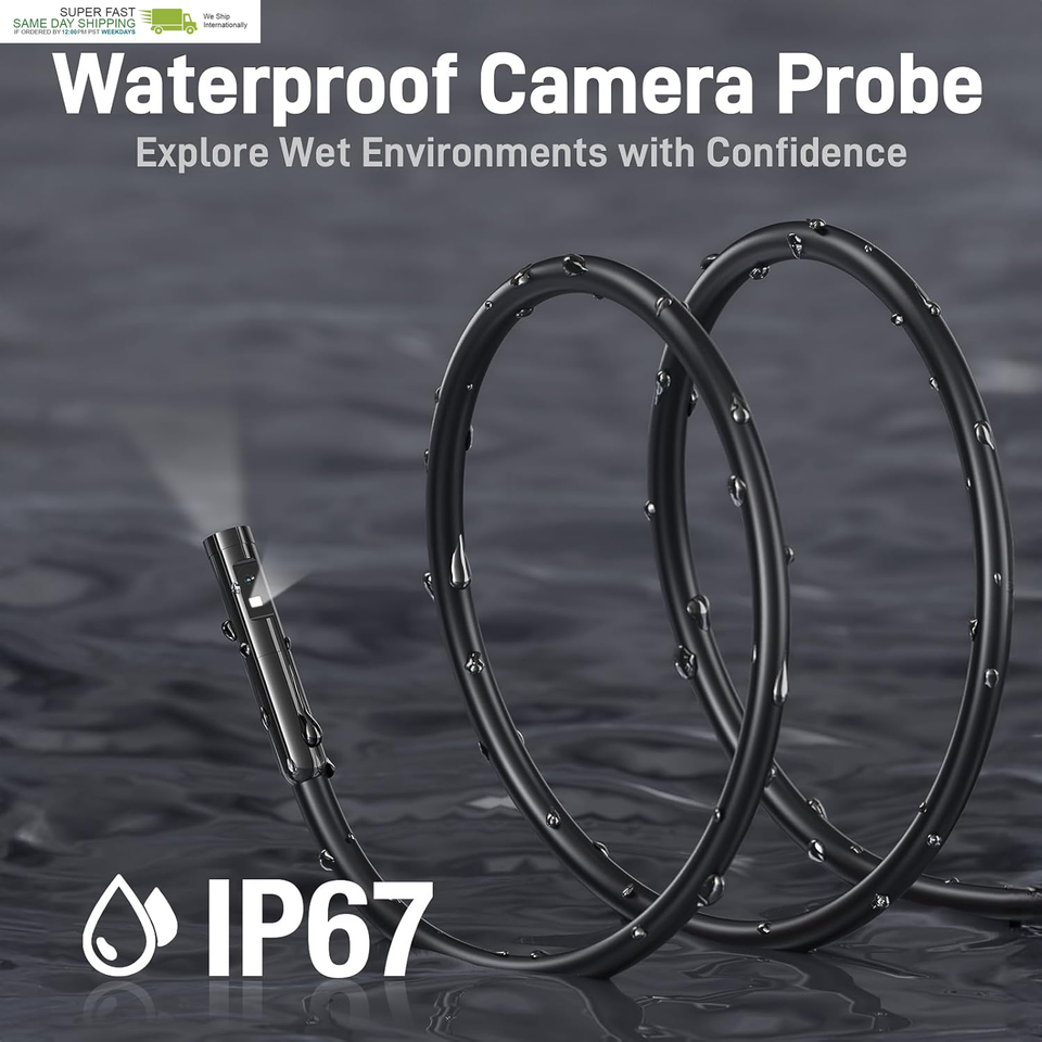 Durable Flexible 16.5ft Semi-Rigid Cable: Navigate tight, hard-to-reach spaces with ease using the semi-rigid 16.5ft cable, designed to hold its shape for precise positioning. Rated IP67 for waterproofing, it?s built to withstand wet and dusty environments. The 8mm camera probe is ideal for plumbing, HVAC systems, automotive repairs, and more?whether you're a professional or a DIY enthusiast, this borescope will meet your inspection needs.