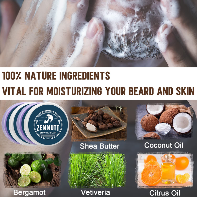 4 Packs Shaving Soap W/Shaving Bowl,Shaving Brush,Shaving Cream,Unqiue Gift Set