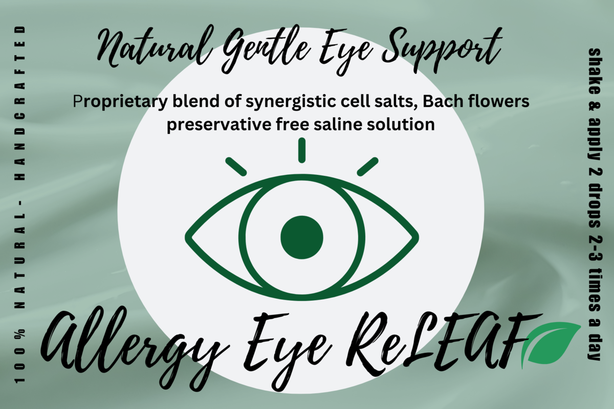 ALLERGY EYE RELEAF DROPS are natural, gentle and effective at targeting seasonal allergies. Proprietary blend of cell salts, Bach flowers that work in perfect synergy to bring reLEAF to itchy eyes. Homeopathic cell salts and Bach flower essences in the formula will stimulate the body’s own ability to assist in restoring natural equilibrium and wellness.