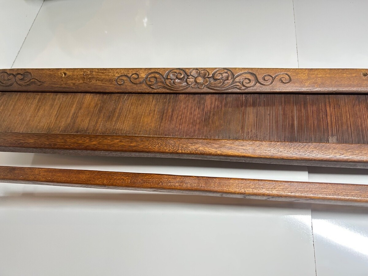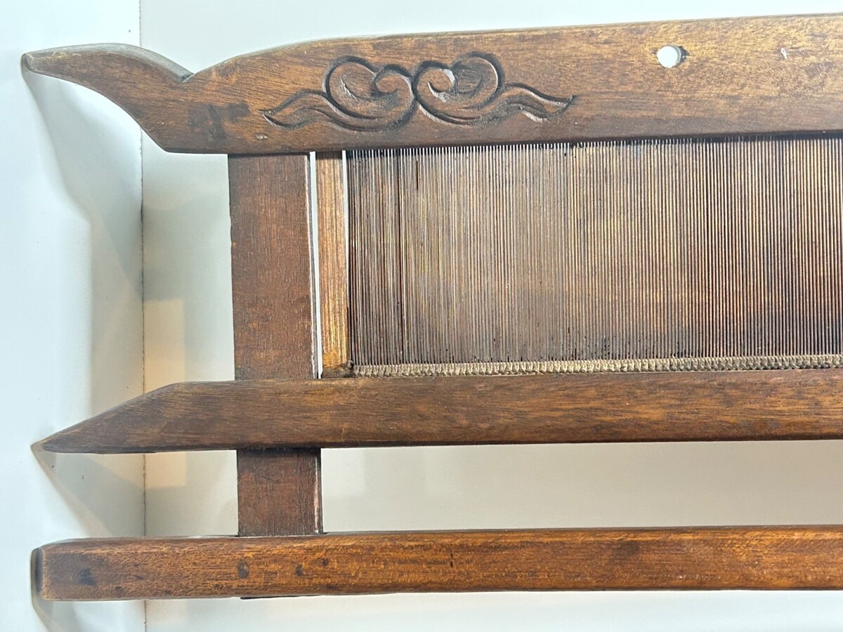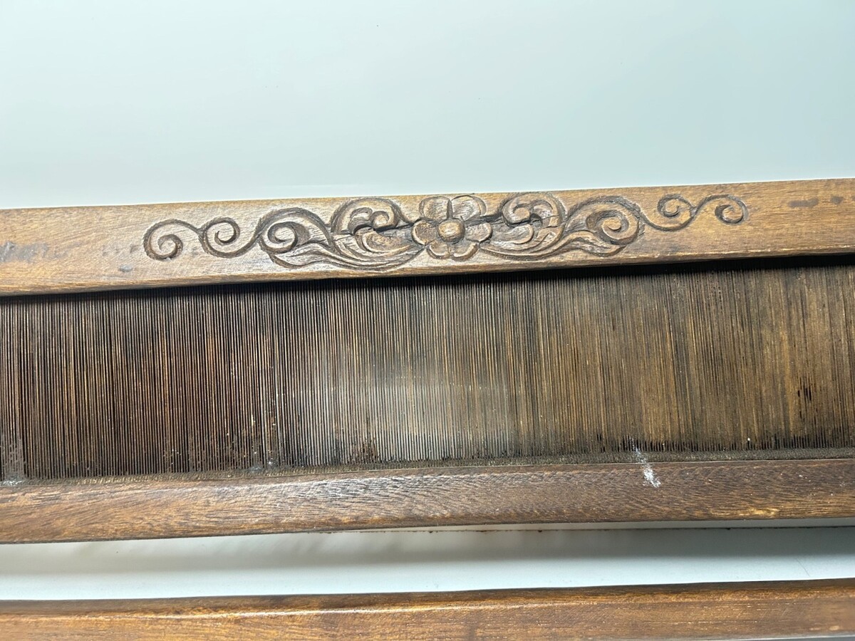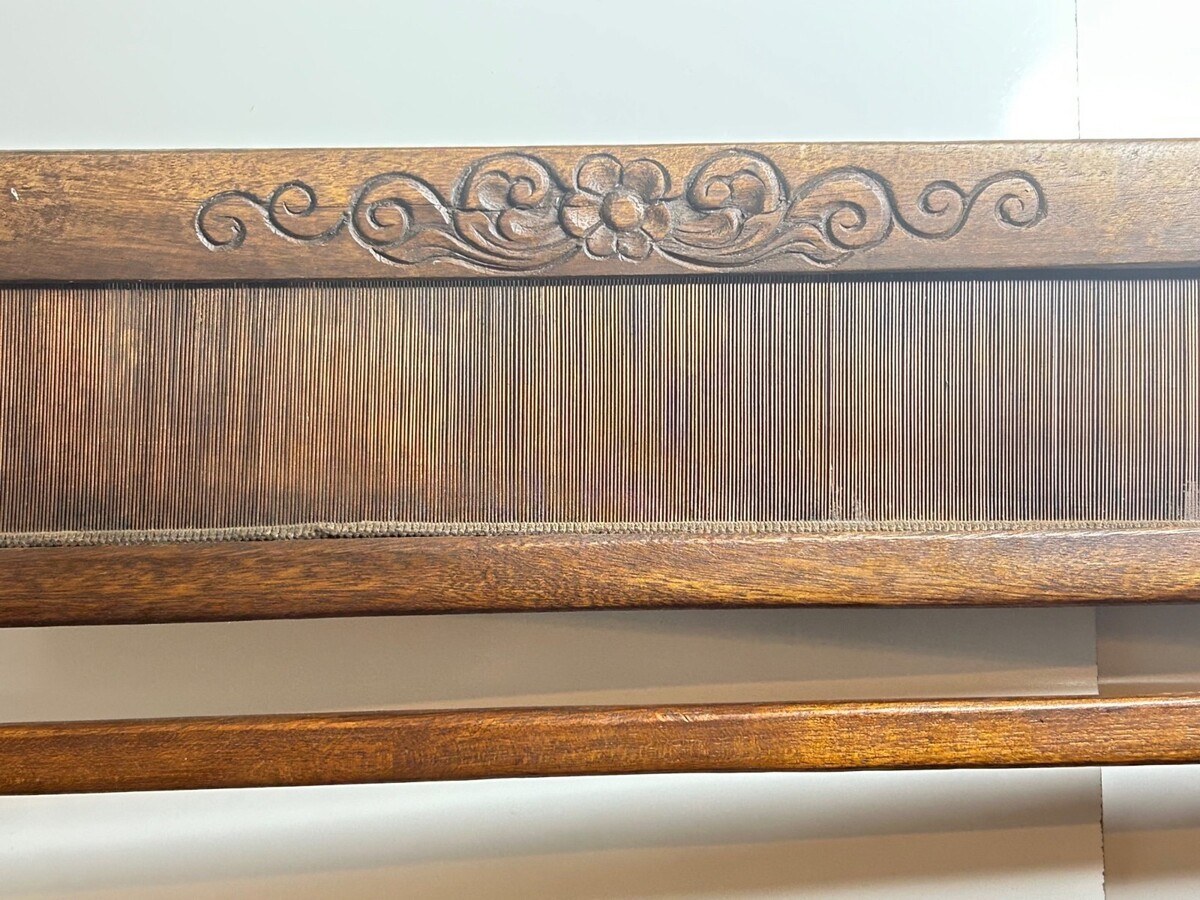 Wooden Handloom Reed Carved Floral Design Weaving Loom 36” Vintage Thailand Loom